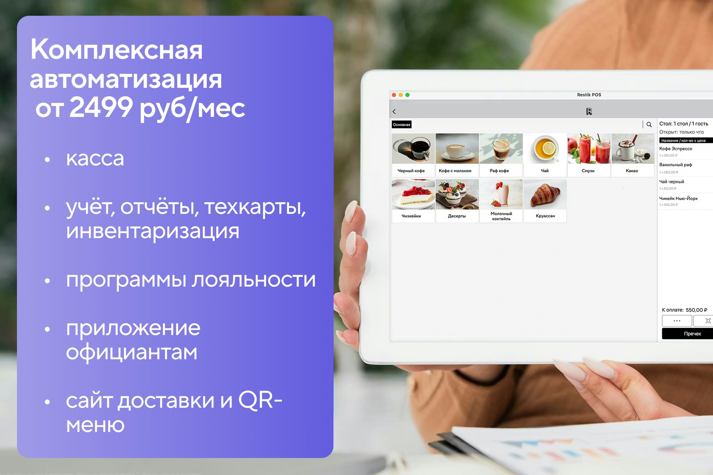По соотношению цена/функции/простота Restik является сбалансированным решением для кафе, кофеен и небольших ресторанов.